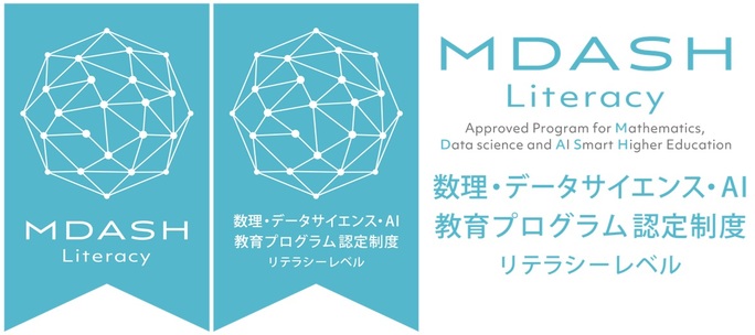 本プログラムは、「数理・データサイエンス・AI教育プログラム認定制度実施要綱」(令和3年2月24日文部科学大臣決定)の規定に基づき、文部科学大臣により令和7年8月26日付で「数理・データサイエンス・AI 教育プログラム(リテラシーレベル)」に認定されました。(※認定の有効期限:令和12年3月31日)