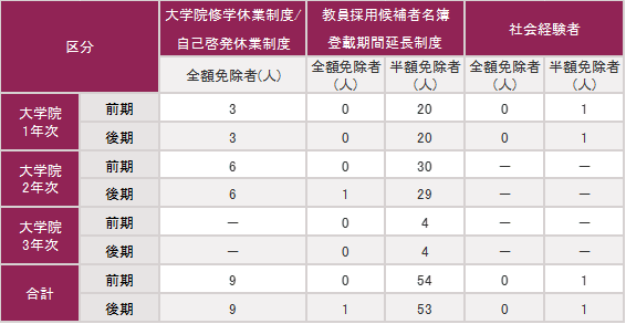 (注釈4)社会経験者の授業料免除は,入学初年度のみ半額免除(家計基準によっては全額免除)。