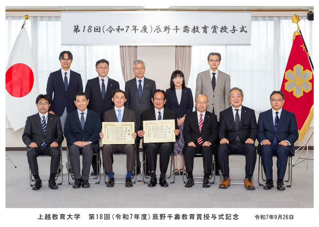 9月26日(金)に第18回辰野千壽教育賞の授与式を開催し、本学の林学長が、優秀賞を受賞された山本靖氏、奨励賞を受賞された窪田悠氏に、その栄誉を讃え、賞状を授与するとともに副賞を贈呈しました。
